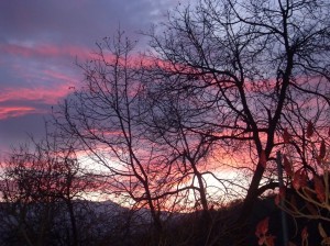 Domenica sera all’imbrunire. La macchina carica, pronti a partire dalla montagna per tornare a casa. Ma la macchina non si avvia – le batterie cedono all’improvviso, si sa –, parlo con il nostro vicino e padrone di casa che si offre di portarmi il giorno dopo, di buon mattino, dal suo meccanico.