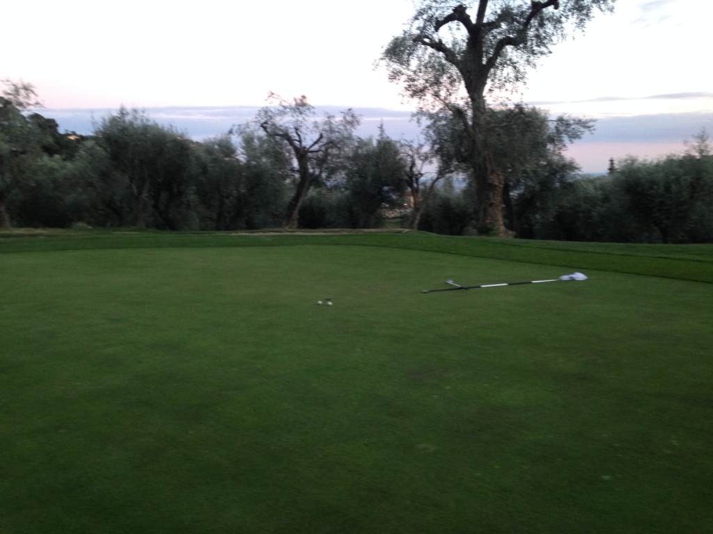 La prima è stata di leggerezza, venerdì nell’ora che ho potuto dedicare alla prova campo. La scena, all’imbrunire sul green della 14, era questa: