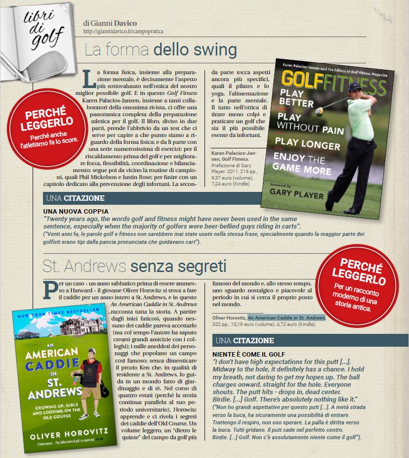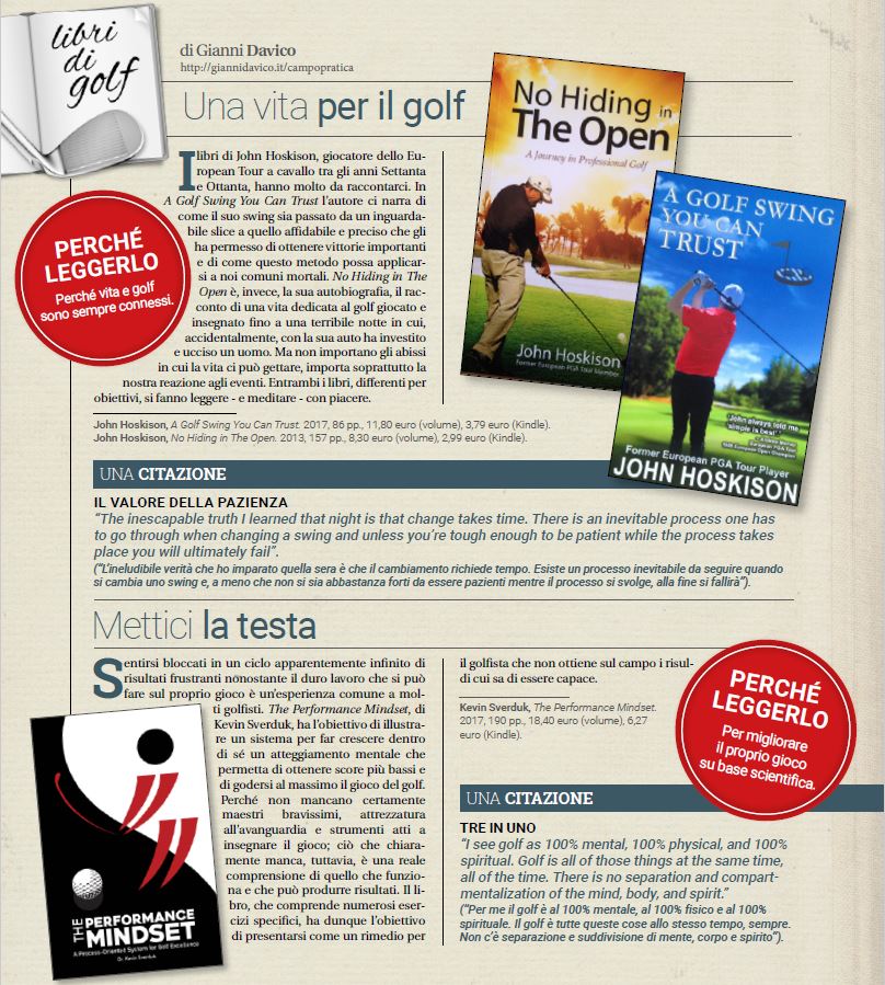 “Il Mondo del Golf Today”, dicembre 2018, recensioni: