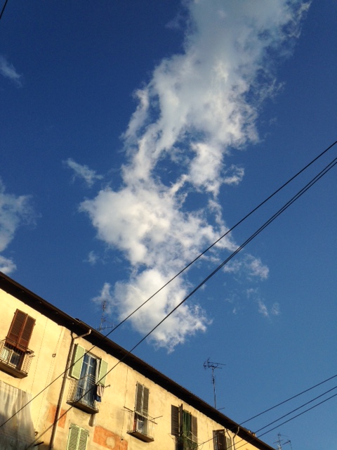 Peui, mentre che i spetava n’amis, i l’ha vist na nìvola. A j’era eut ore ‘d sèira, a më smijava che tut a andèissa bin. Tut a andasìa bin.
