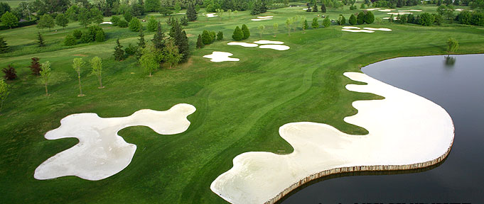 Intanto, è un par 4 corto (328 metri, diciamo legno 3 e ferro 8), con acqua sulla sinistra lungo quasi tutto il percorso e poi anche sulla destra nei pressi del green. Green che è ben difeso da diversi bunker, ma la buca in sé non presenta difficoltà soverchie.